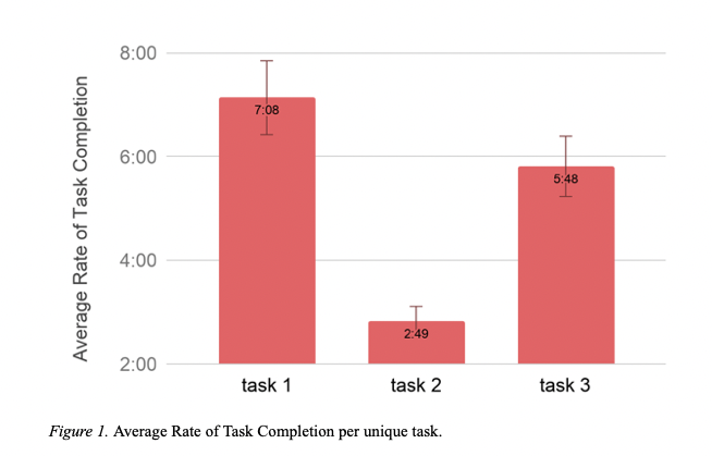 After all participants completed each task, they reported on a scale of 1-to-7, an average positive valanced word rating of 5.44 with a standard deviation of 0.37. Indicating a lot of positive valanced words like fast, organized, and expected were strongly fitting to the interface. On the same scale, they rated negative valanced words as not being fit around 2.7 with a standard deviation of 0.49. This is in congruency with the indication that a lot of negative valanced words like complex, annoying, inconsistent as not fitting well to the interface (See Table 3 and Appendix D for more information on this User Experience Questionnaire). After everyone completed the tasks, some common words to describe Quizlet was “helpful, massive, content, and confused.”